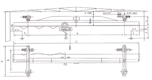 注:(1)跨度 (S)每1.0米一档 用户可自选 (2)起重机总重包括电动葫芦自重。
